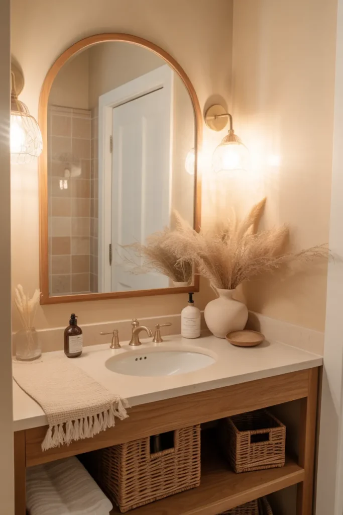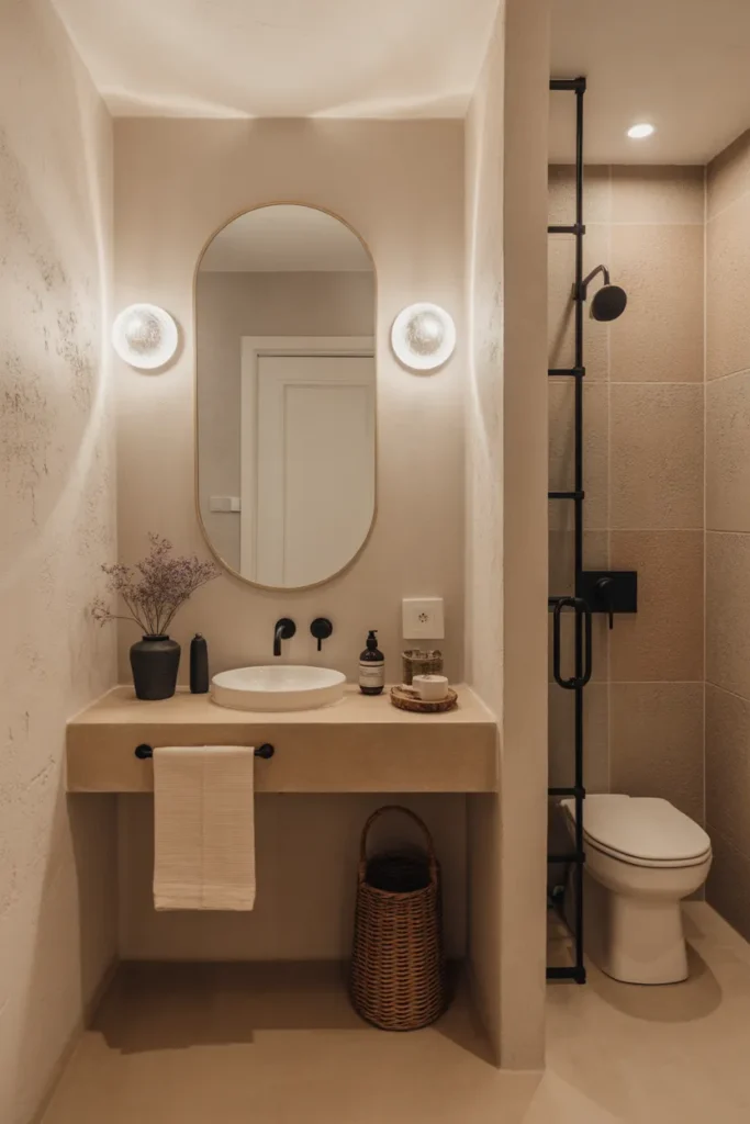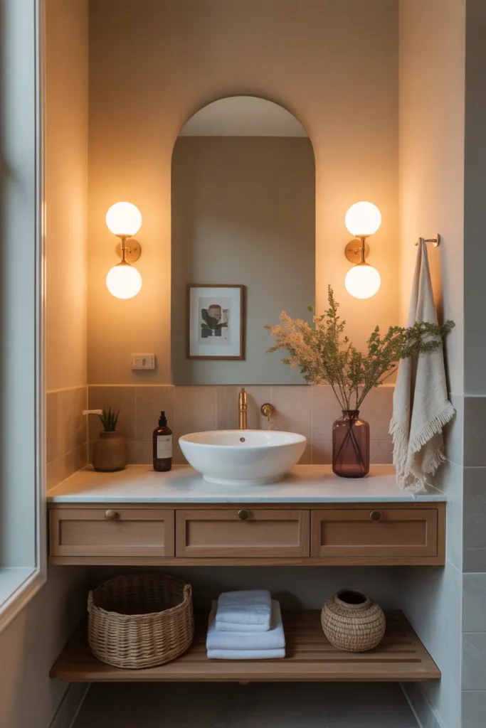 This lighting choice adds warmth and sophistication to small bathrooms. Thoughtfully placed sconces improve functionality while contributing to a cozy, inviting atmosphere that feels polished and intentional.
