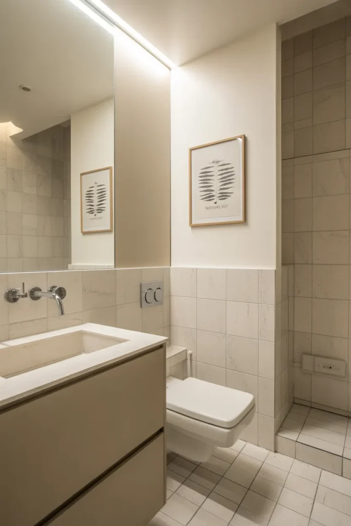Well-chosen art transforms the bathroom into a curated space. It adds visual interest and expression, making even a small room feel thoughtfully designed and memorable.