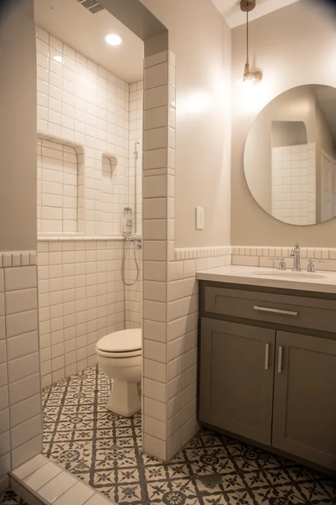 This design choice introduces character in a subtle yet impactful way. When paired with neutral walls, patterned tiles create balance, making the bathroom feel stylish, cohesive, and thoughtfully designed.