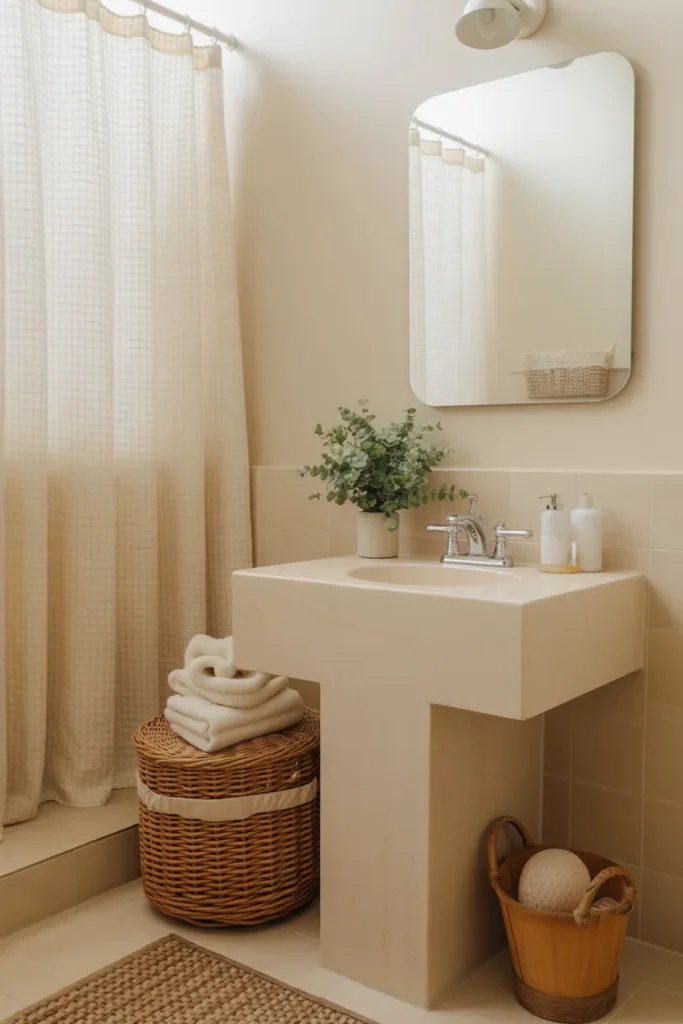 These finishing touches may be small, but they have a significant impact. Thoughtful coordination ties the design together, resulting in a polished, welcoming bathroom that feels carefully styled and well-maintained.