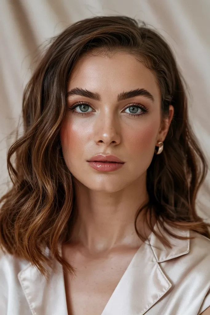 This hairstyle works beautifully for both casual days and special occasions. It pairs well with neutral outfits and soft makeup looks, allowing the hair color to stand out naturally. Warm chestnut waves are especially flattering on medium to warm skin tones, creating a balanced, polished, and approachable appearance.