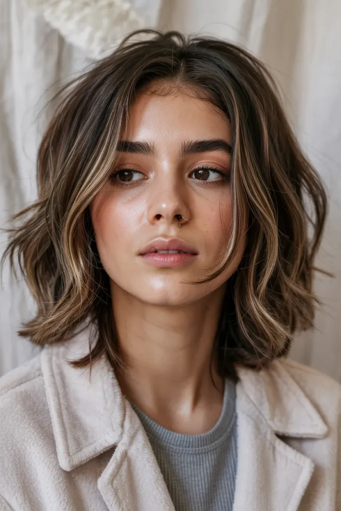 This hairstyle is perfect for those wanting a subtle refresh. The highlights blend seamlessly, making maintenance easy while keeping the look fresh and modern. It’s a go-to Pinterest style for natural beauty lovers.