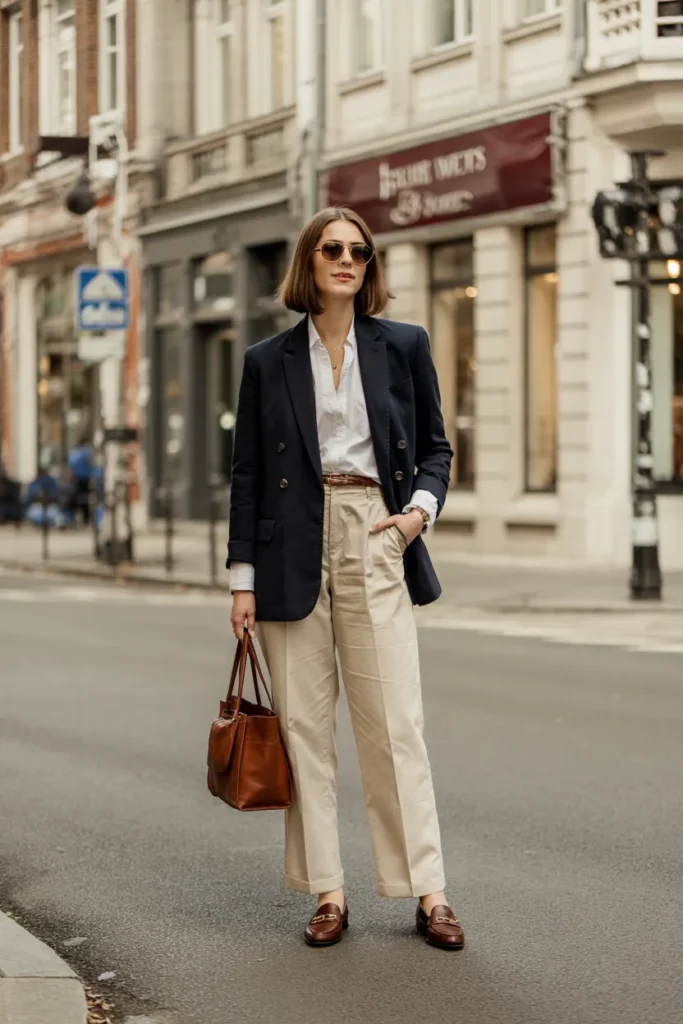 5. Navy Blazer with Cream Trousers