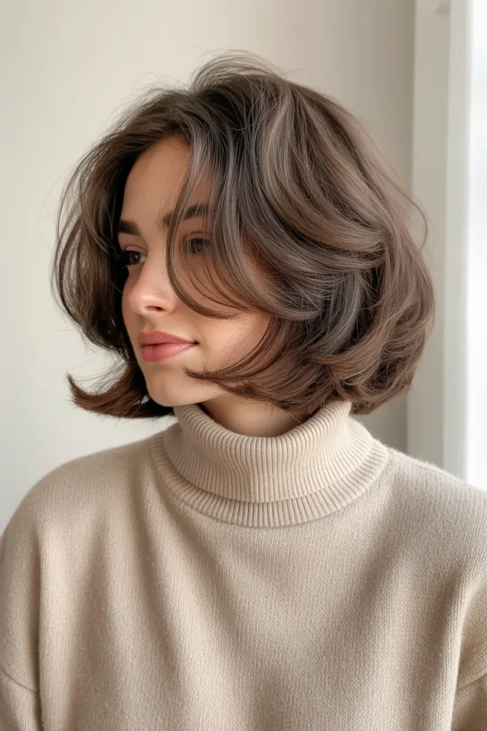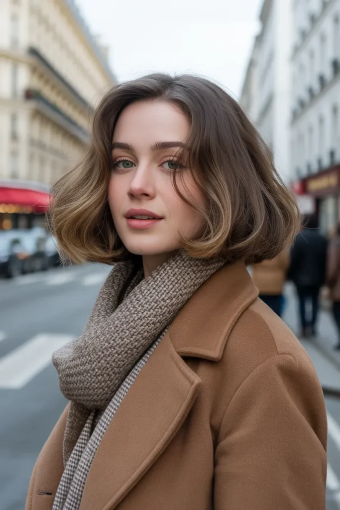 The classic French bob brings sophistication with a modern, softened shape. Cut near the jawline, it enhances facial features while subtle volume prevents it from looking flat. The slightly undone texture adds effortless charm.