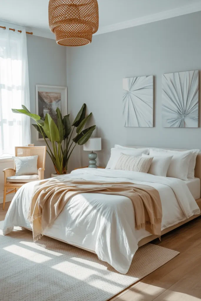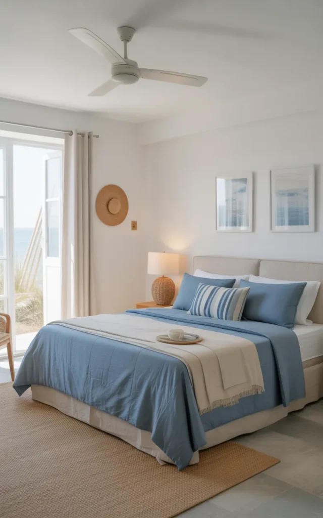 This balance gives your bedroom a soft, coastal charm that feels both relaxing and modern.