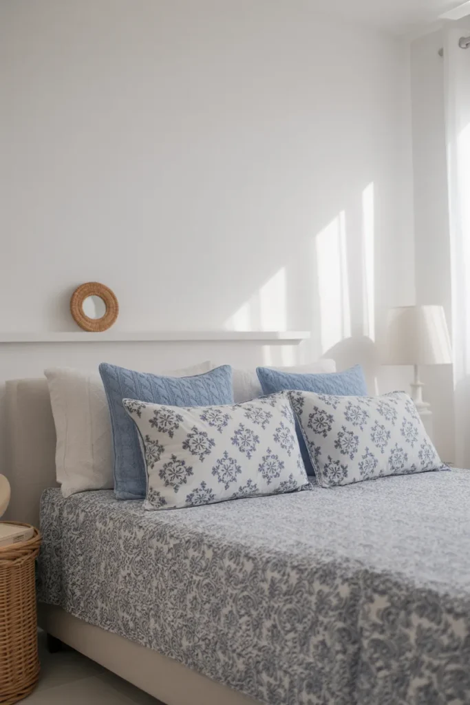 Patterns bring energy into the space. Blue designs stand out beautifully against white, creating a lively yet calm atmosphere.