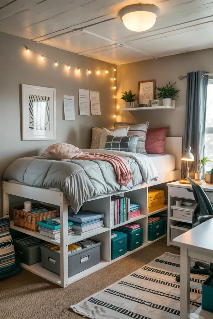 14. Dorm Room Bed with Stackable Under-Bed Bins