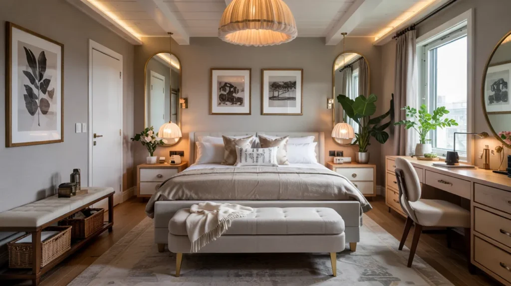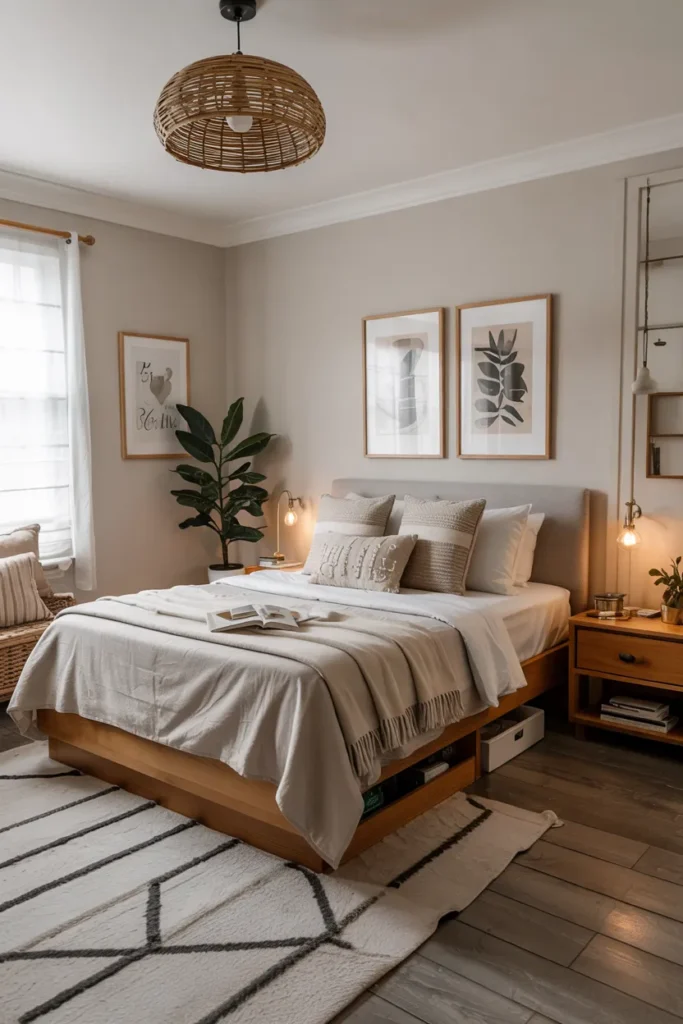 This idea keeps the room welcoming and clutter-free without adding bulky furniture.