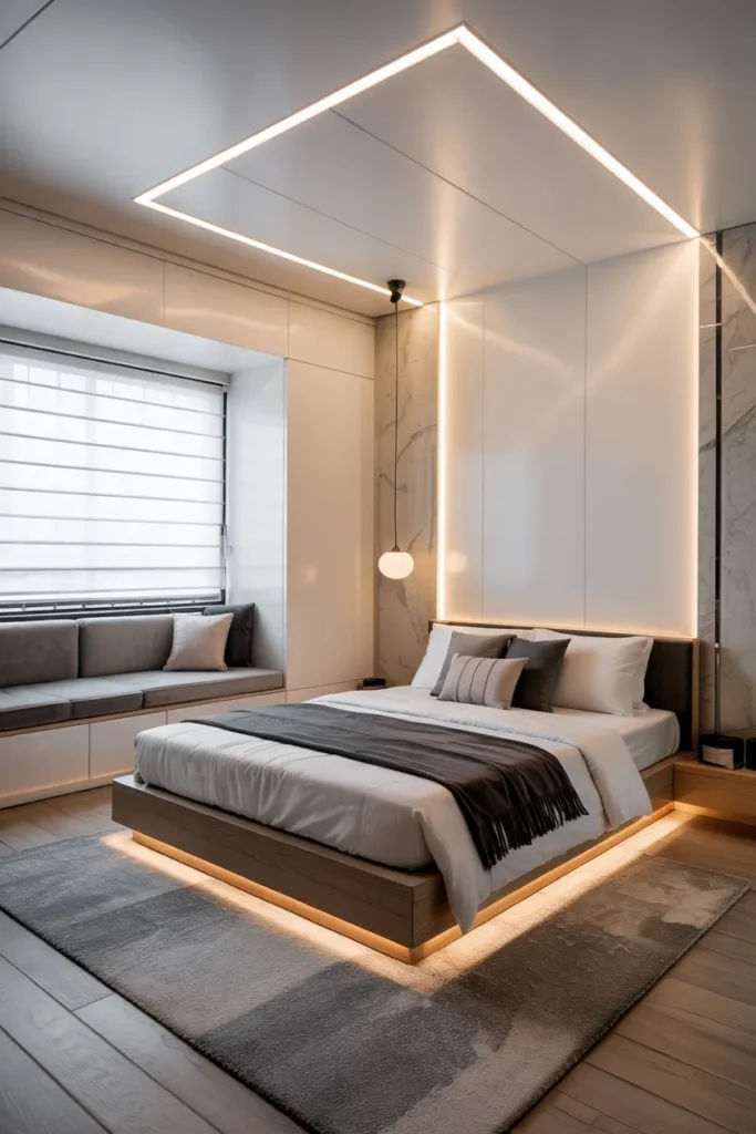 16. Floating Bed with Concealed Storage Compartments