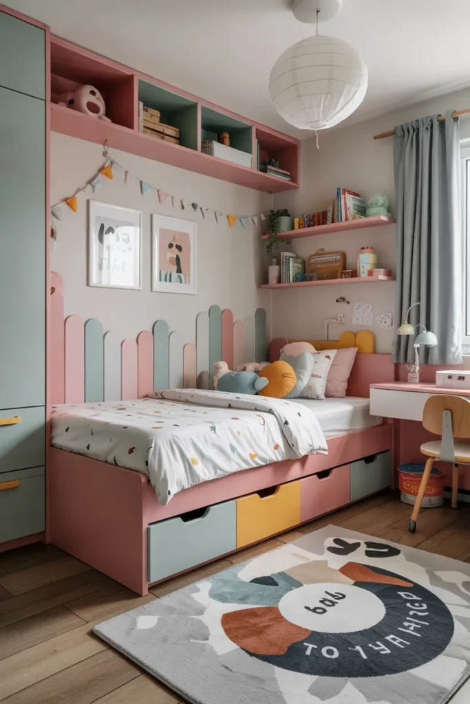 8. Kids’ Tiny Bedroom with Toy Storage Under Bed