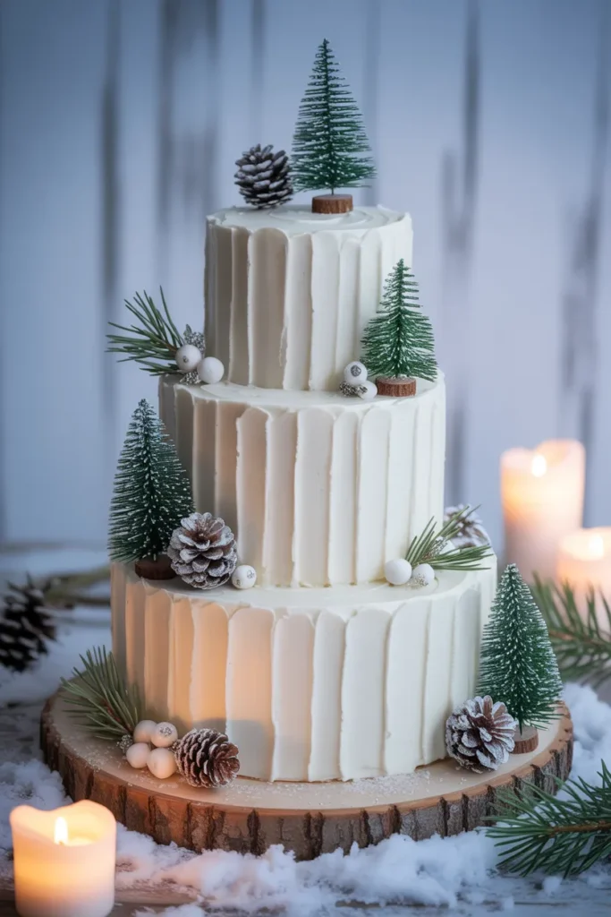The balance of simplicity and charm gives it a Pinterest-perfect aesthetic. Each layer is frosted to mimic snow-covered peaks, creating a design that’s elegant yet grounded in winter serenity. A must-have for couples who love nature and luxury combined.