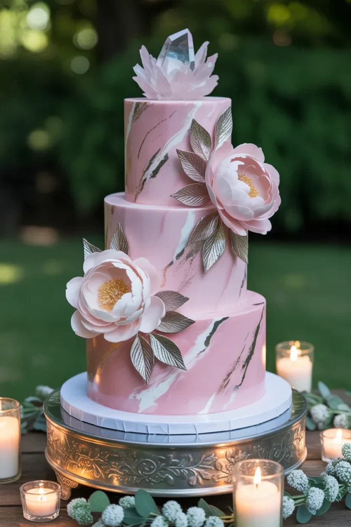 The silver highlights and crystal topper add luxury and shine, making this cake a statement piece for 2025–2026 winter weddings. It’s stylish, graceful, and sure to be a favorite on any Pinterest wedding board.