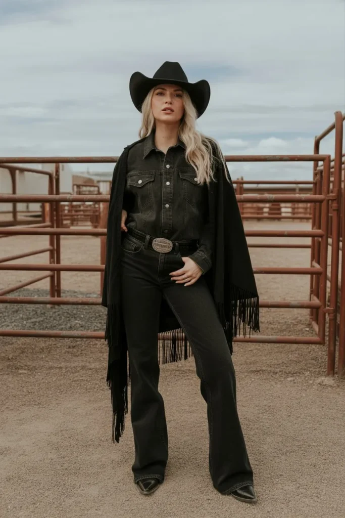 In 2026, darker western styles are embraced for their bold elegance. This outfit feels confident, modern, and visually strong.