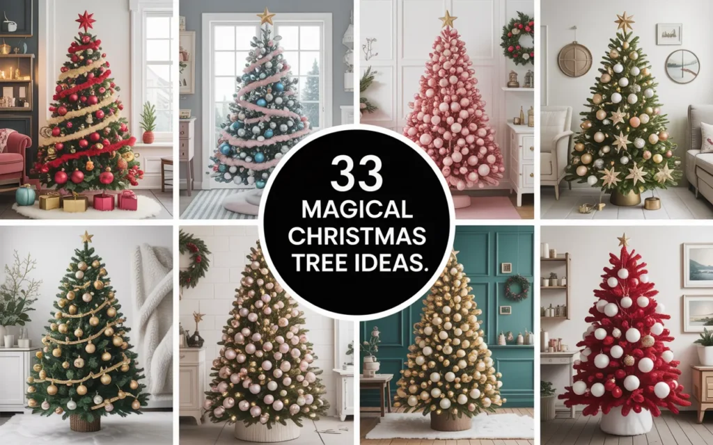 In this guide, we’ll share 33 magical Christmas tree ideas to inspire your holiday decorating. From rustic farmhouse styles and shimmering metallics to playful, kid-friendly designs, these trees are sure to spark your imagination. No matter your taste or space, you’ll find inspiration to create a Christmas tree that feels joyful, personal, and truly unforgettable.