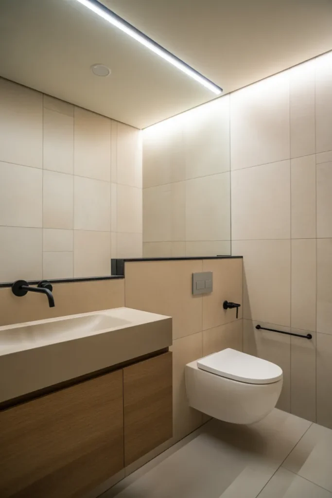 Beyond aesthetics, wall-mounted fixtures offer practical benefits. Cleaning becomes easier, and the overall design feels intentional and uncluttered. When paired with neutral colors and subtle lighting, this bathroom style feels modern, efficient, and elegantly balanced.