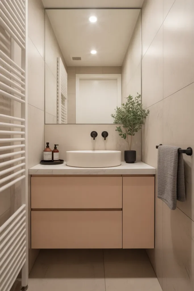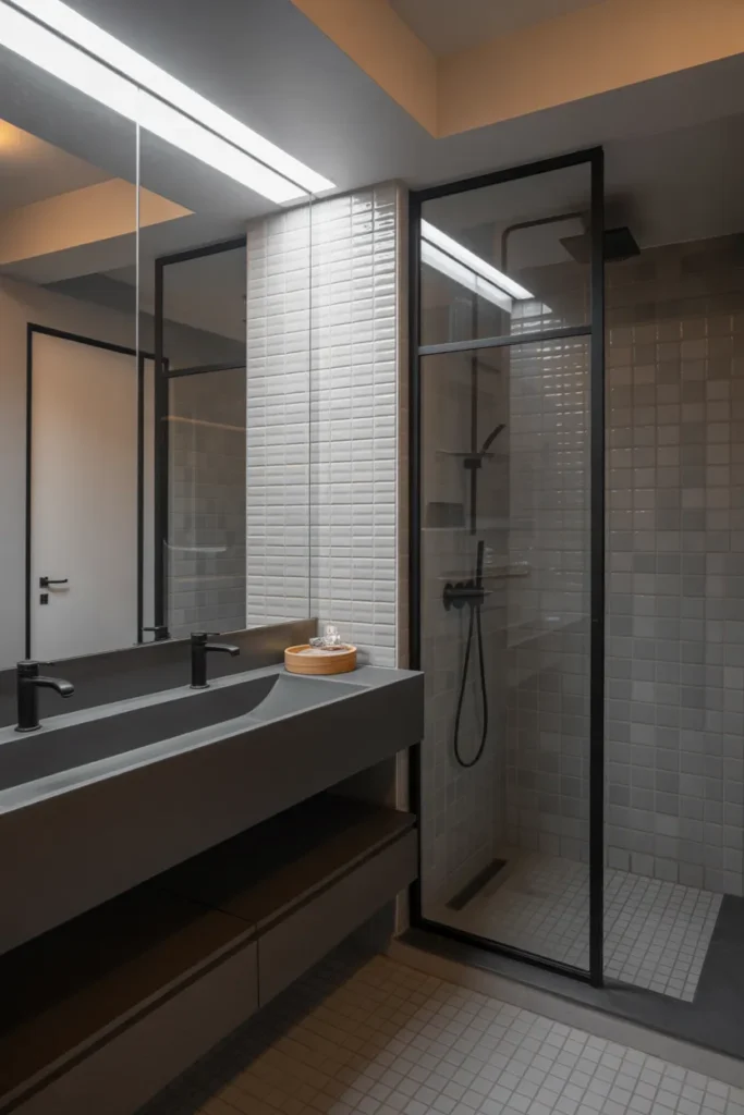 Smart storage solutions improve functionality and organization. With thoughtful planning, even a compact bathroom can feel comfortable, modern, and visually balanced while remaining practical for daily use.