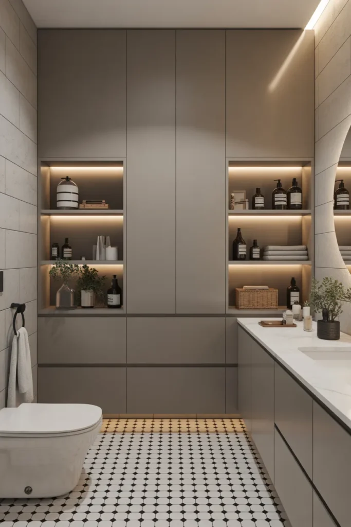 15. Modern Bathroom with Built-In Storage