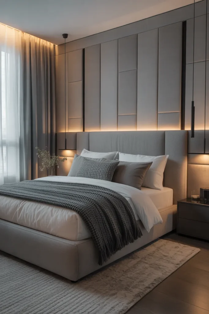A modern grey bedroom delivers a refined and contemporary look. Light grey shades feel soothing and airy, while deeper greys add richness and sophistication. When combined with plush bedding and warm lighting, grey feels inviting rather than cold.