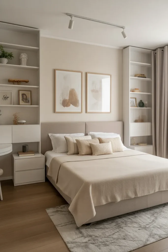 Soft textiles add warmth without clutter. Every element is chosen with purpose, creating balance and flow. A well-planned small bedroom proves that limited space can still feel refined, inviting, and comfortable.