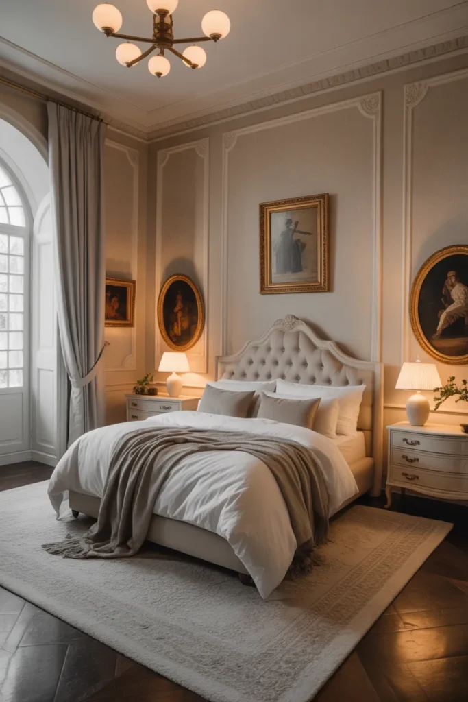 A timeless elegant bedroom focuses on lasting style rather than trends. Neutral colors, classic furniture, and soft lighting create a harmonious and welcoming environment. The design feels calm and balanced, making it suitable for long-term comfort.