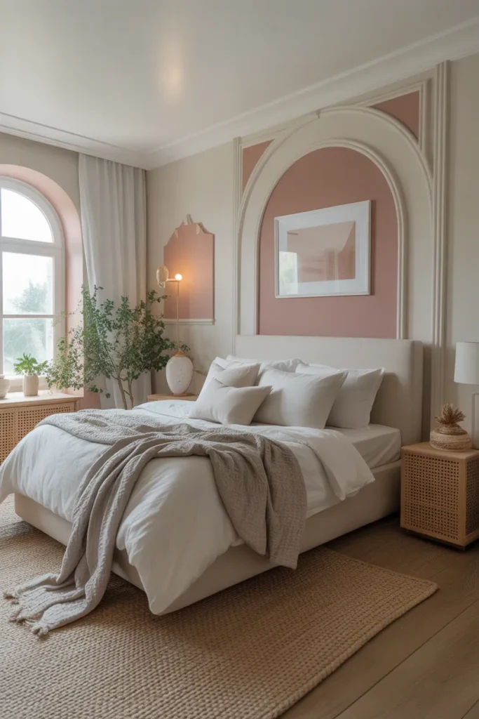 Soft color accents bring personality to a bedroom while keeping the space calm and elegant. Subtle hues introduced through cushions, throws, or artwork add warmth and interest without overwhelming the neutral base. This approach allows flexibility and balance in the design.