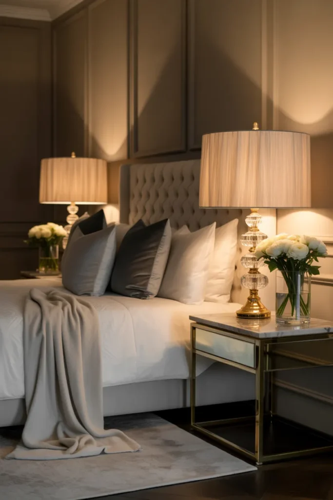4. Elegant Bedside Lighting with Warm Glow