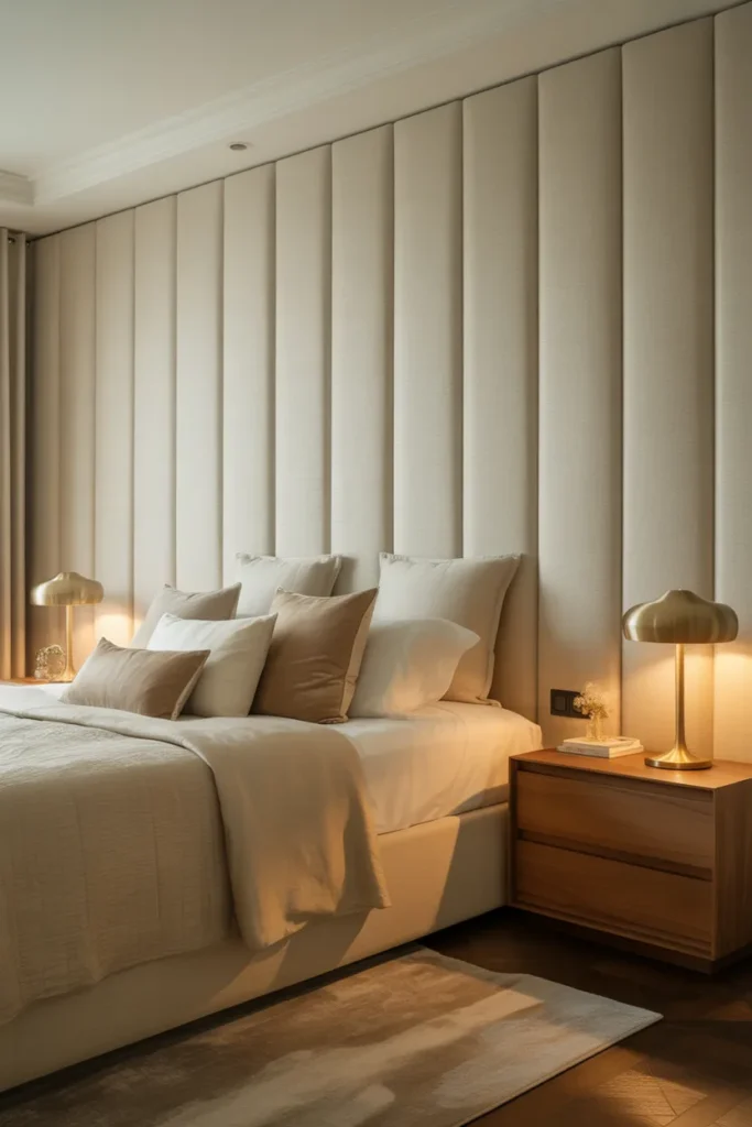 These panels also improve comfort by softening sound and adding insulation. They make the bedroom feel quieter and more intimate. This design choice instantly elevates the space, giving it a boutique-hotel feel while maintaining comfort and livability.