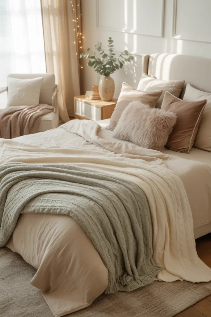 Throws are also an easy way to refresh the bedroom. They allow seasonal updates without changing major furnishings. This small design element adds depth and coziness, making the space feel welcoming and thoughtfully layered.