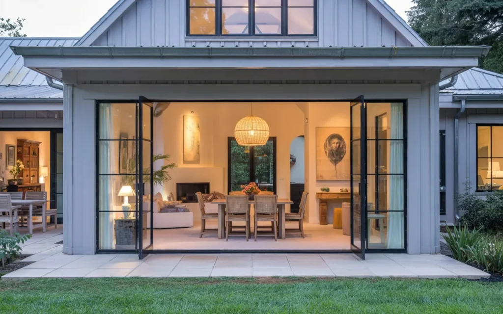 Connecting indoor and outdoor spaces enhances comfort and flow. Large windows or glass doors invite light and nature inside.